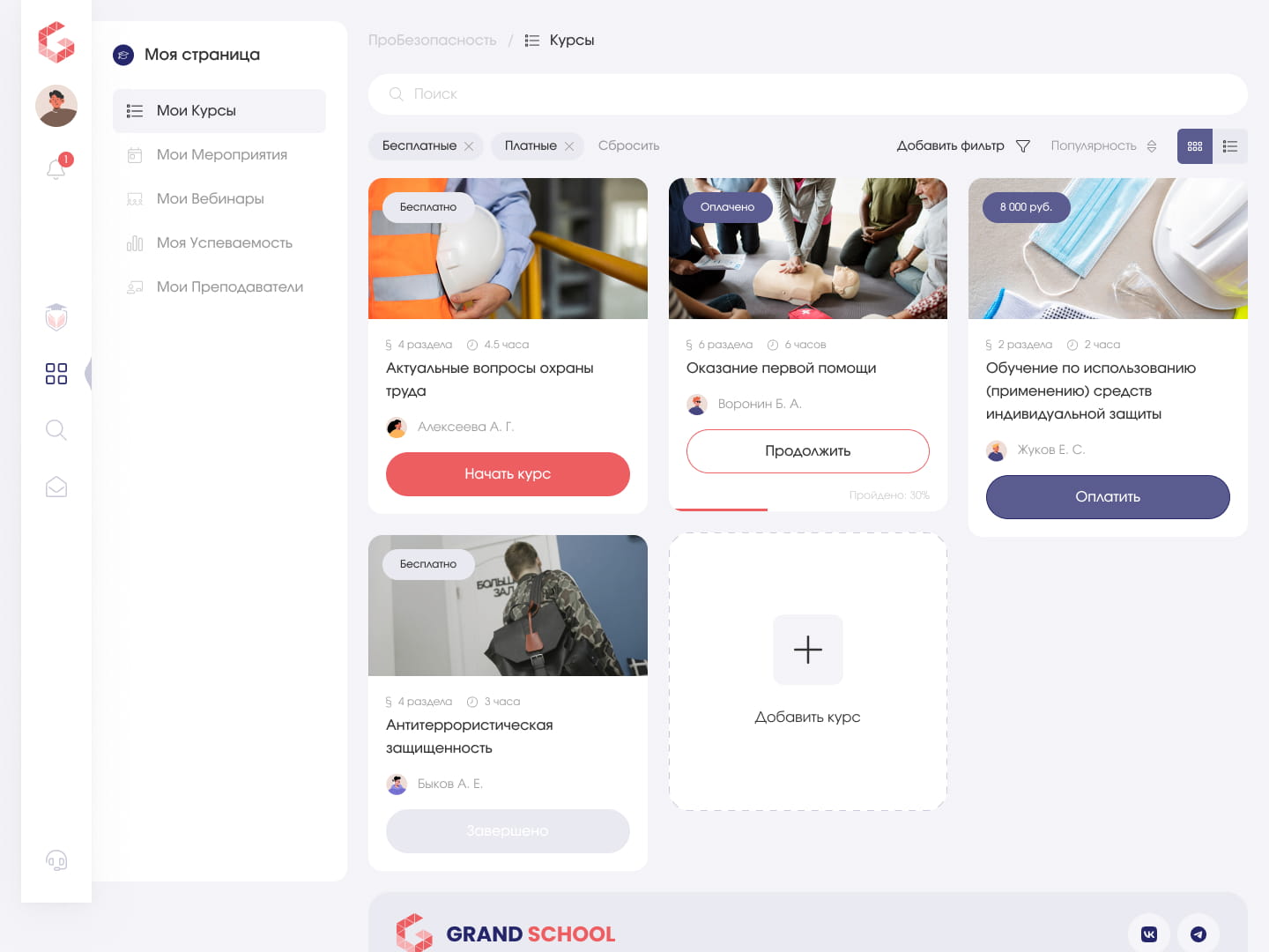 Учебный центр "Гранд Скул" предлагает обширный спектр программ профессиональной подготовки и повышения квалификации "Инструктор" в различных форматах, включая очные и дистанционные курсы. Мы обеспечиваем быстрое рассмотрение заявлений на запись, и вы можете быть зачислены на курс уже в день подачи заявки.
